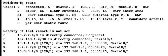 由图可见,C代表直连的两个网络。R代表由RIP协议从路由器R1上学习来的3个IP。
