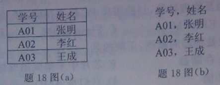 18. 在 Word 中,可以直接用操作命令将题 18(a)所示的表格转换为题 18 图(b)所示的非 表格形式。