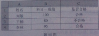 98.题 98 是用 Excel 统计的个人驾考成绩,科目一成绩大于等于 90 分的合格,否则不合格。 若要用函数判断每个是否合格,则 C2 单元格的判断函数是 。