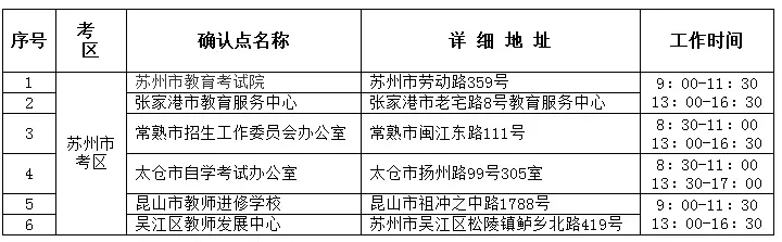苏州州2018教师资格考试笔试报名现场确认点信息表