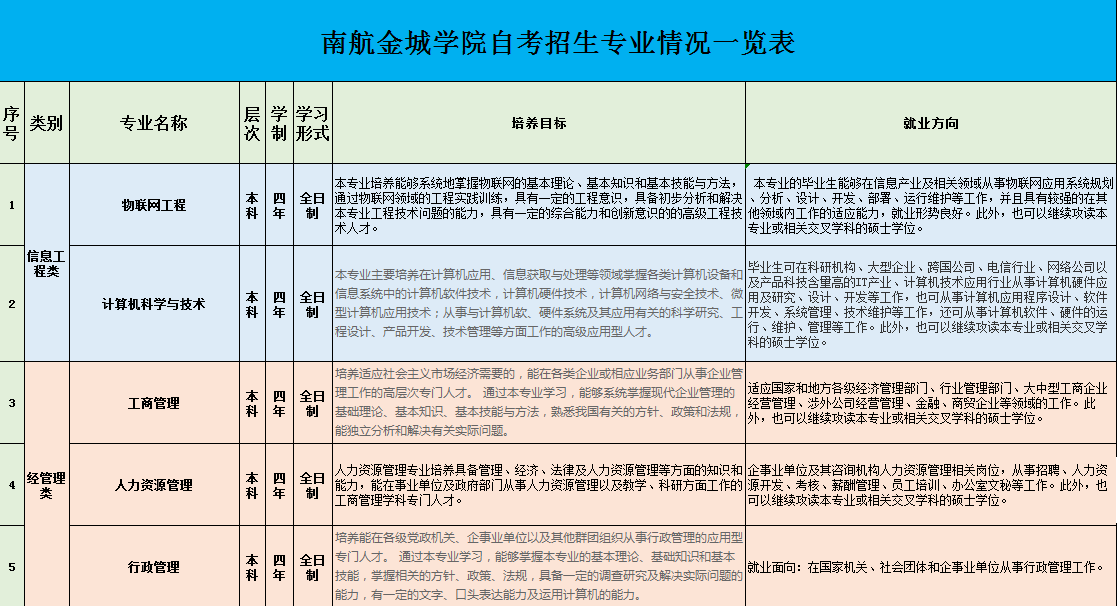 学校针对自考学生,实行全日制授课模式。学生入学后的吃、住、学都在南航金城学院,可享受学校优雅的校园环境和完善的教学设施。合理设计培养方案和课程体系,建立教学、监督、评估等体系,确保教育教学质量。