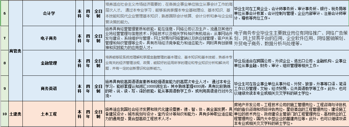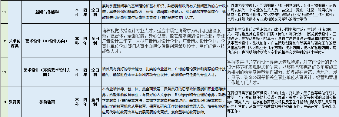 见专业设置表