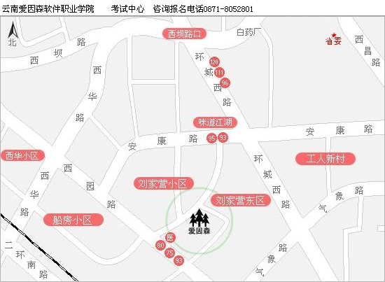 从市内到考试中心:901/23路到数码广场车站下车,向西过马路,北走50米;