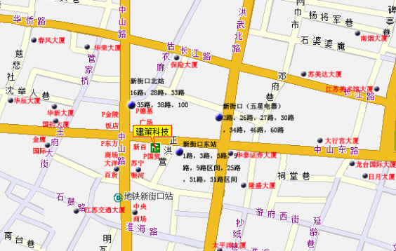 · 长途东站 乘2路到新街口(五星电器)站,下车后向北300米,至十字路口,向西100米,进入南京国际贸易中心,14楼C5室。